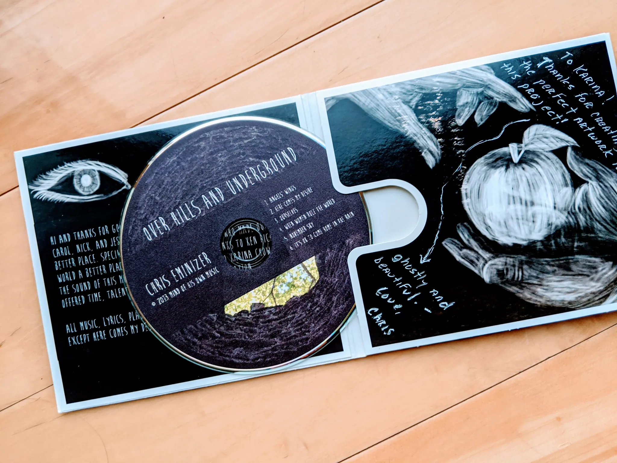 Chris Eminizer is an all-around musician: saxophonist, pianist, singer, and percussionist. He contacted me as he was working on his second album, Over Hills and Underground, and asked if I would make his album art for him.